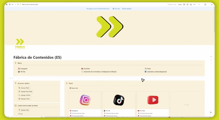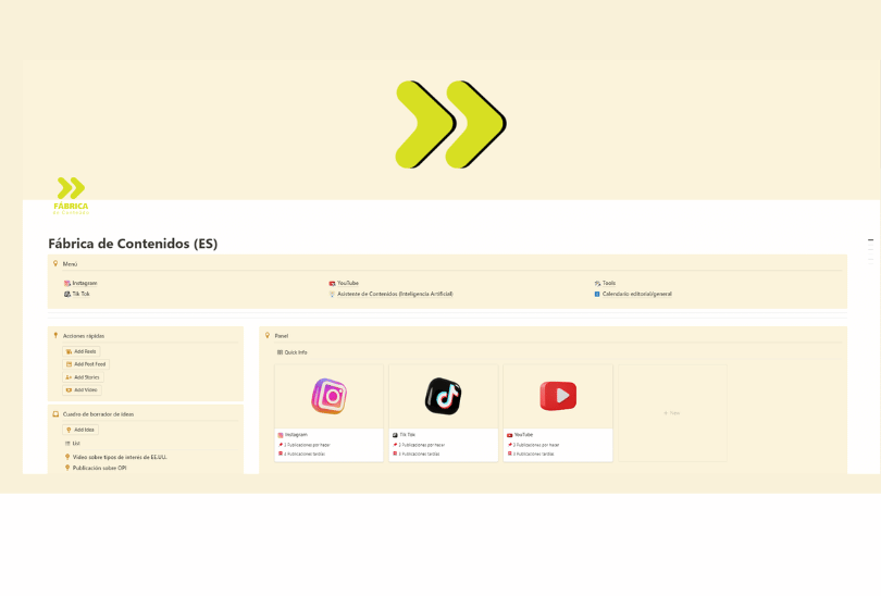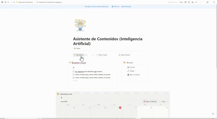 La plantilla que organizará tu vida, creará contenidos con ayuda de Inteligencia Artificial y aprovechará tus redes sociales, ya sea tu empresa o un proyecto personal.