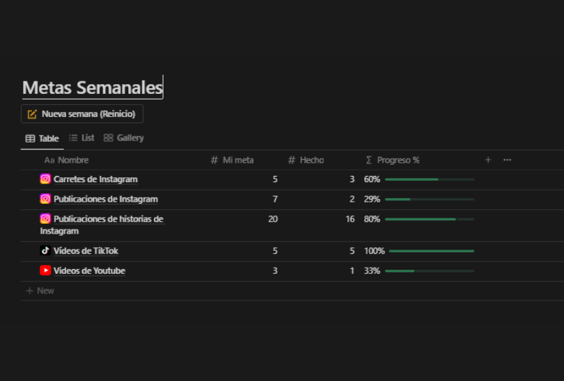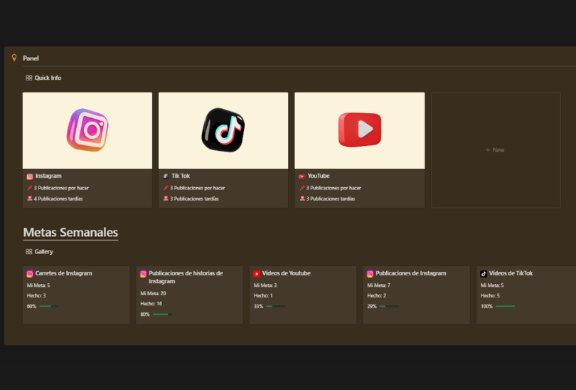 Dashboard interactivo para ver los principales indicadores y objetivos de tus principales redes sociales con un solo clic.